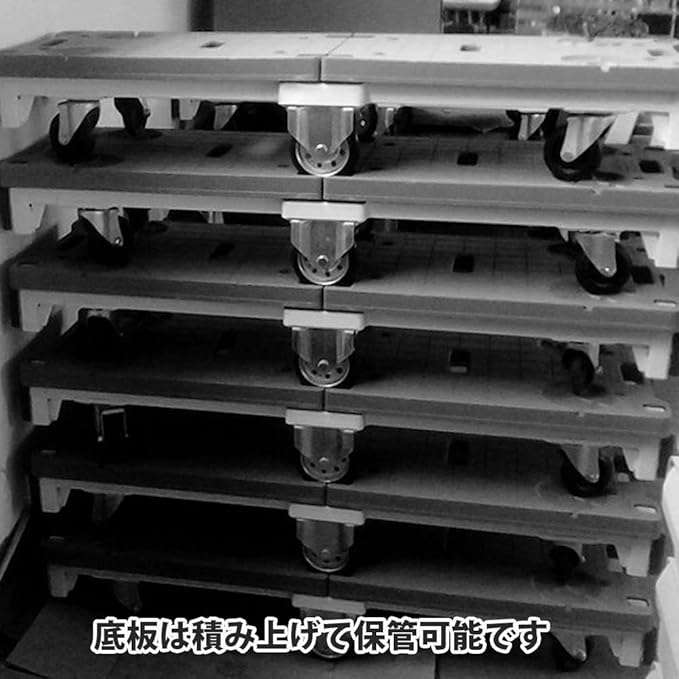 専用の中間棚を設置することが可能です。 中間棚を使わないときには、手持ち柵に引っ掛けることも可能です。 6輪台車台車ご利用上のご注意■注意1「重量」
