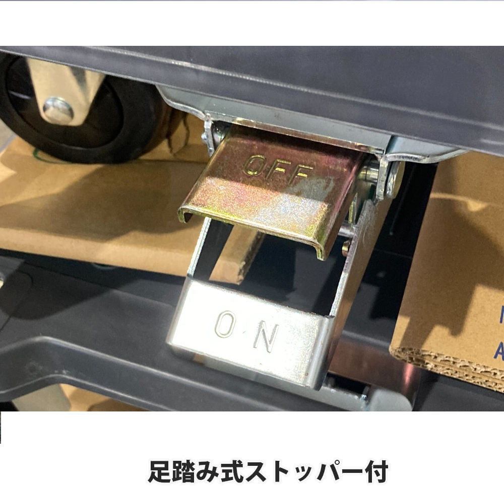 6輪台車を放置する場合は必ずストッパーをセットして下さい。