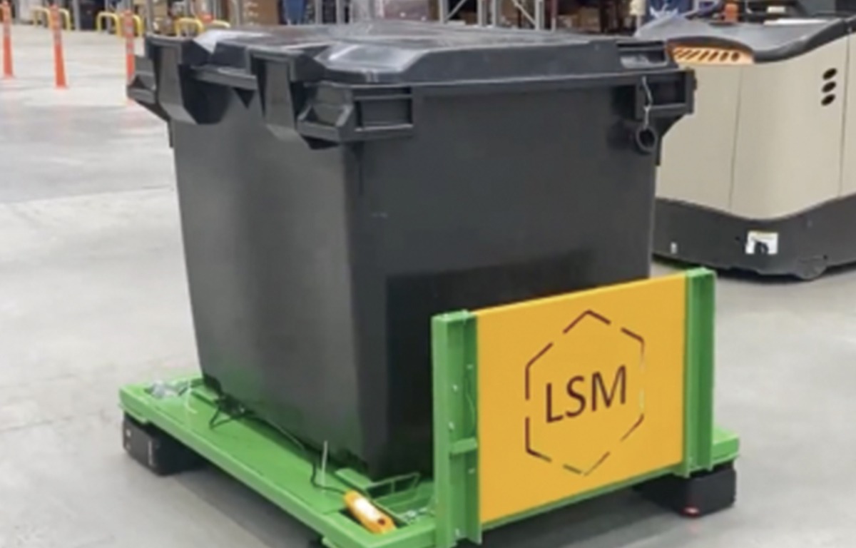 従来のAMRは機体の上に搬送物を乗せるか、ラックの下に潜り込んで台車やラックごと持ち上げるかの2通りですが、このAMRは台車やラック自体にAMRをつけるので、荷物を載せ替える手間がいらなかったり、台車の形など形状にとらわれることがありません。