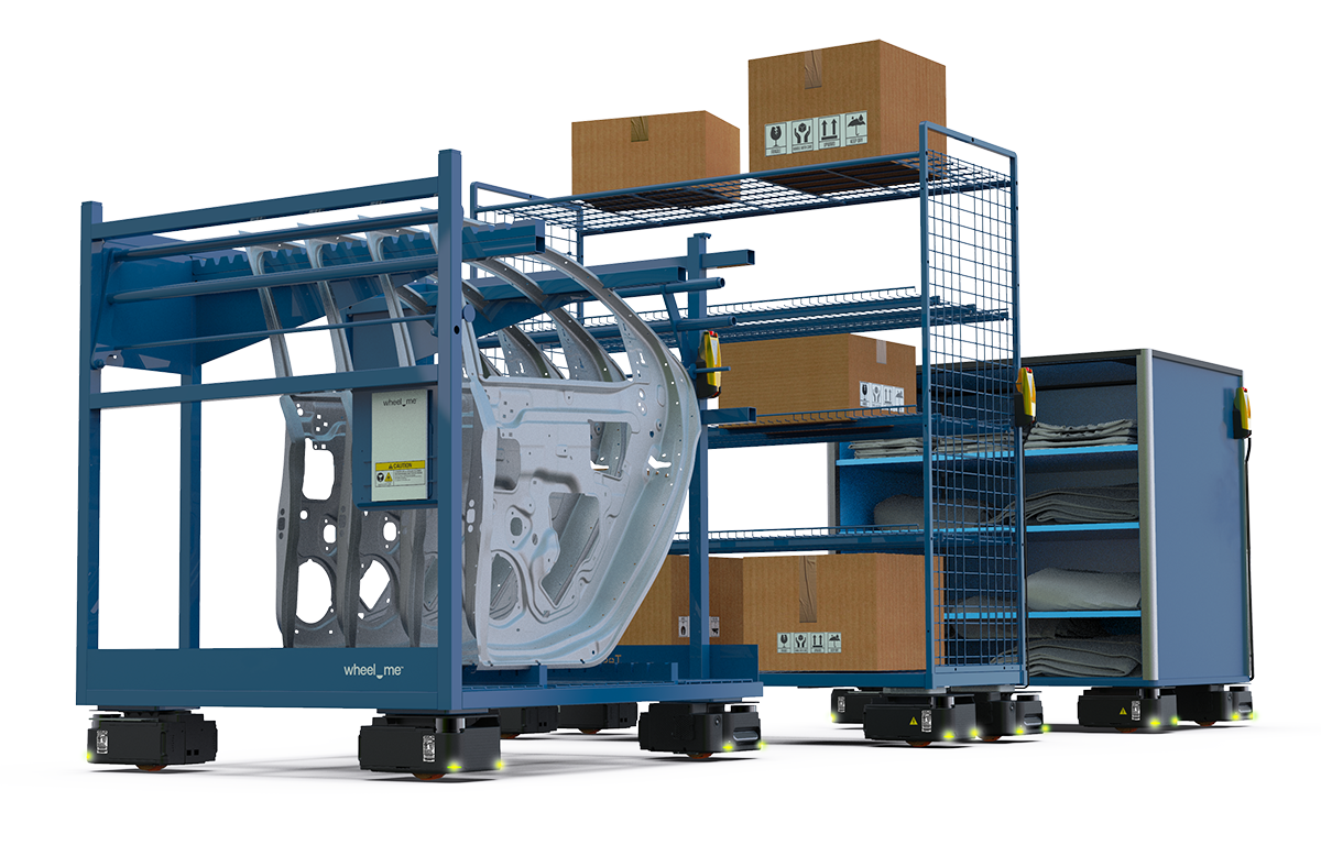 あらゆる台車やラックをAMRに変えるホイール型AMR
