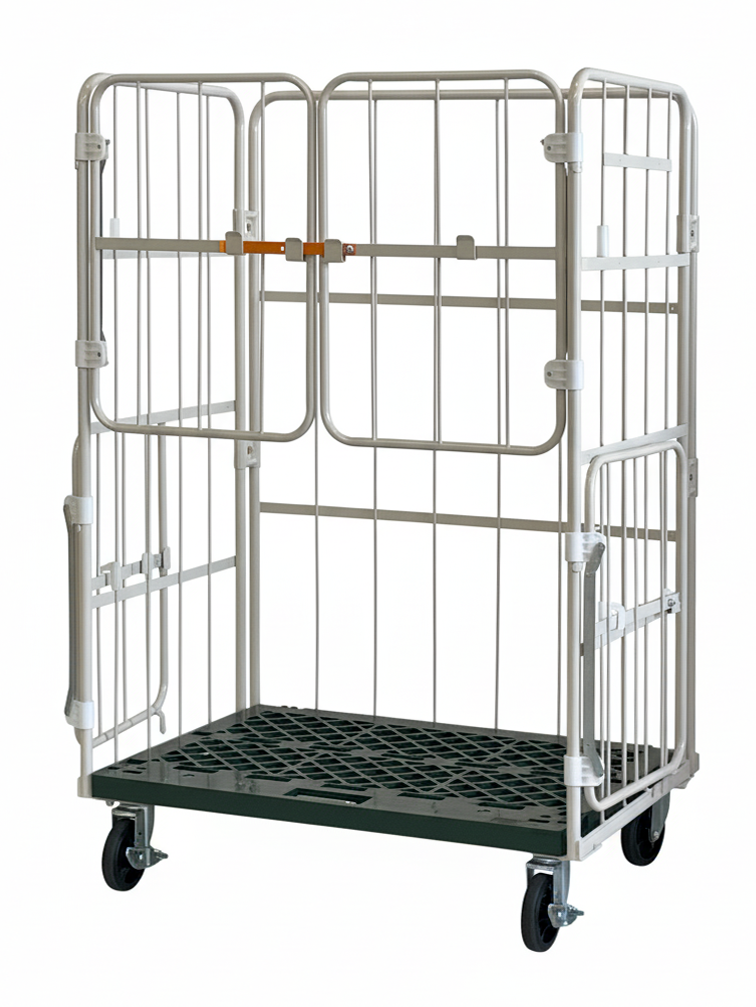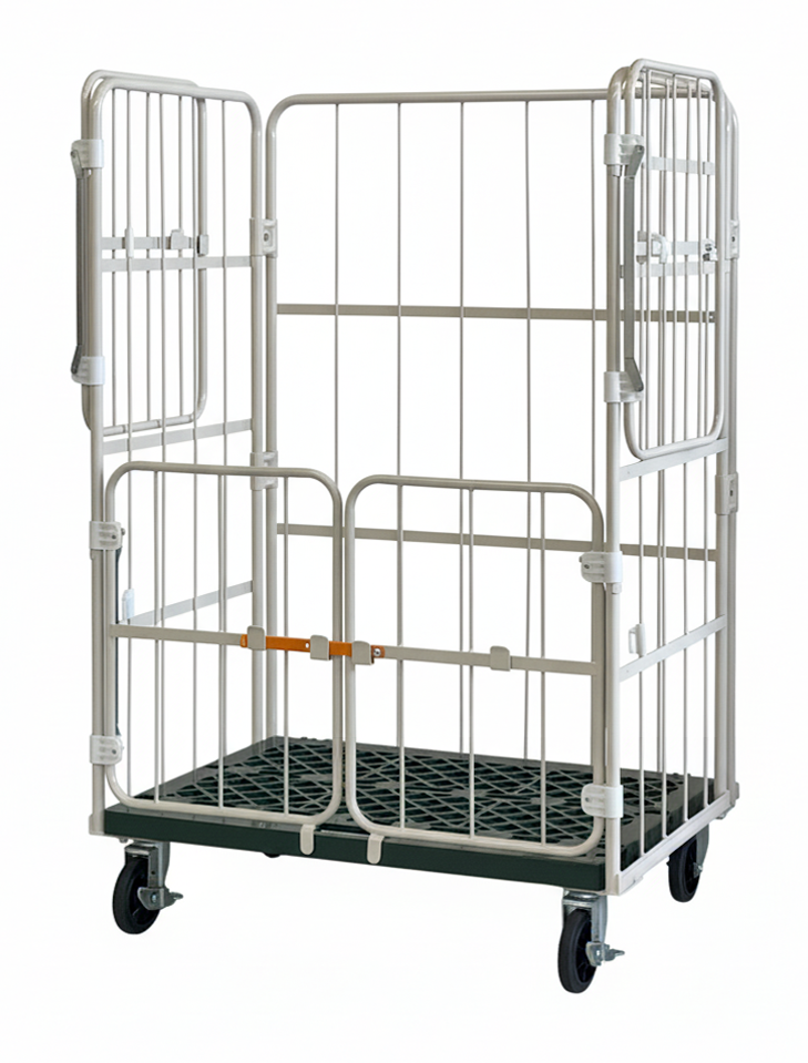 新品カゴ台車 上下観音開き 底板スチール W1100×D800×H1700mm (アイボリー)