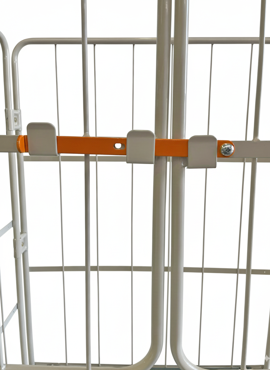 カゴ台車をご使用の際は「ステーバー」をかけてご利用ください。