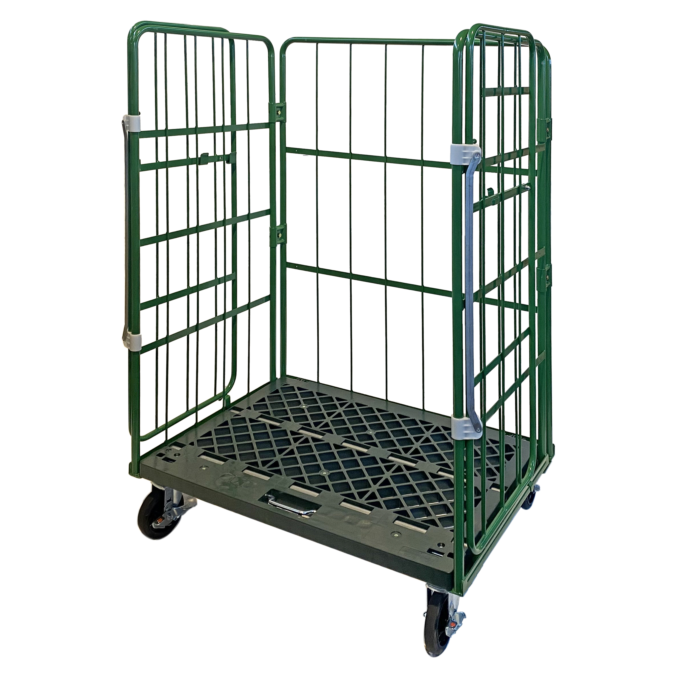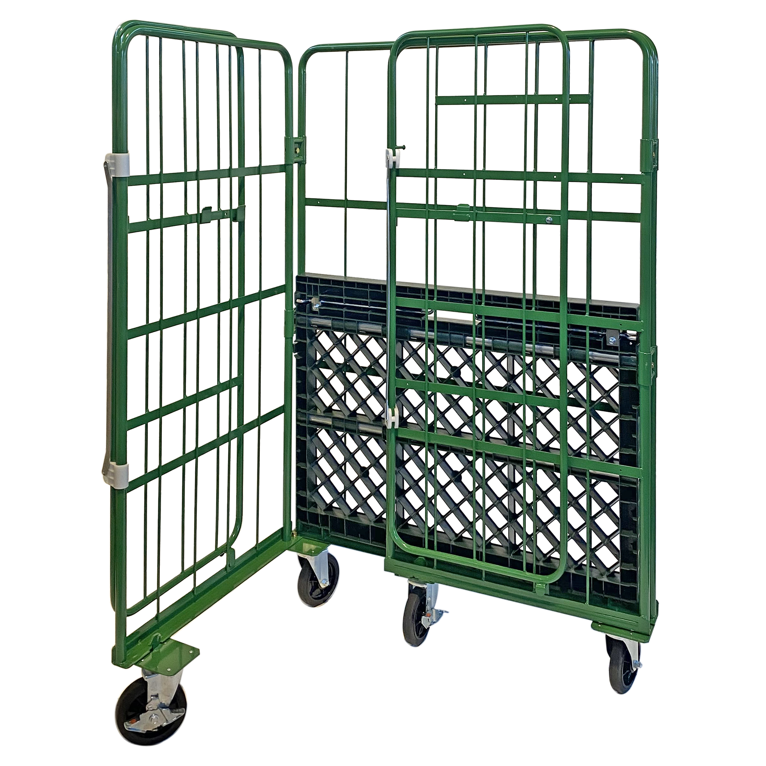 新品カゴ台車 観音開き 連結鉄タイプ W1100×D1100×H1700mm (グリーン)
