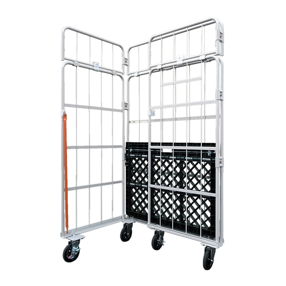 新品カゴ台車 連結鉄タイプ 底板樹脂 W1100×D800×H2000mm (アイボリー)